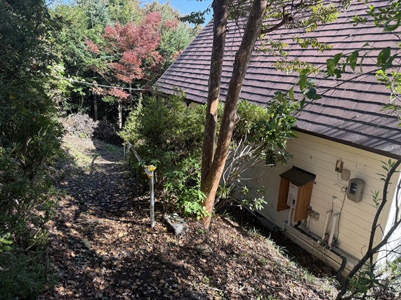 ■傾斜地に建っておりますので、駐車場から玄関まで下り坂を十数メートル歩きます。